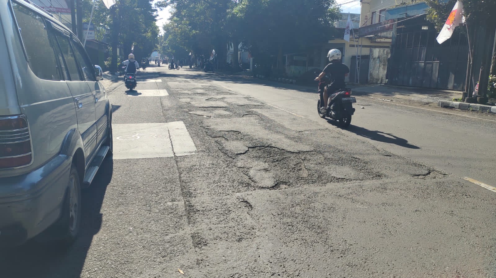 “Ini menjadi lebih parah saat musim hujan, karena lubang yang lebar ini kalau kerendam air tidak kelihatan,” katanya.