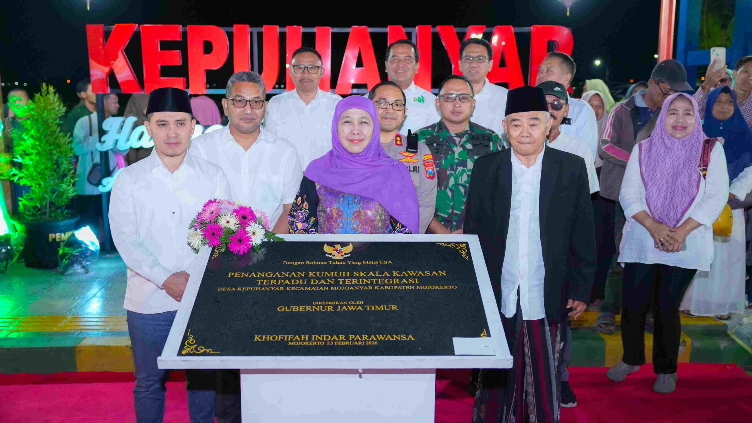 MOJOKERTO, SuaraRepublika.id – Gubernur Jawa Timur Khofifah Indar Parawansa meresmikan Penanganan Kumuh Skala Kawasan Terpadu dan Terintegrasi melalui Program Permata Jatim di Desa Kepuhanyar, Kecamatan Mojoanyar, Kabupaten Mojokerto, Senin (23/2/2026) malam.