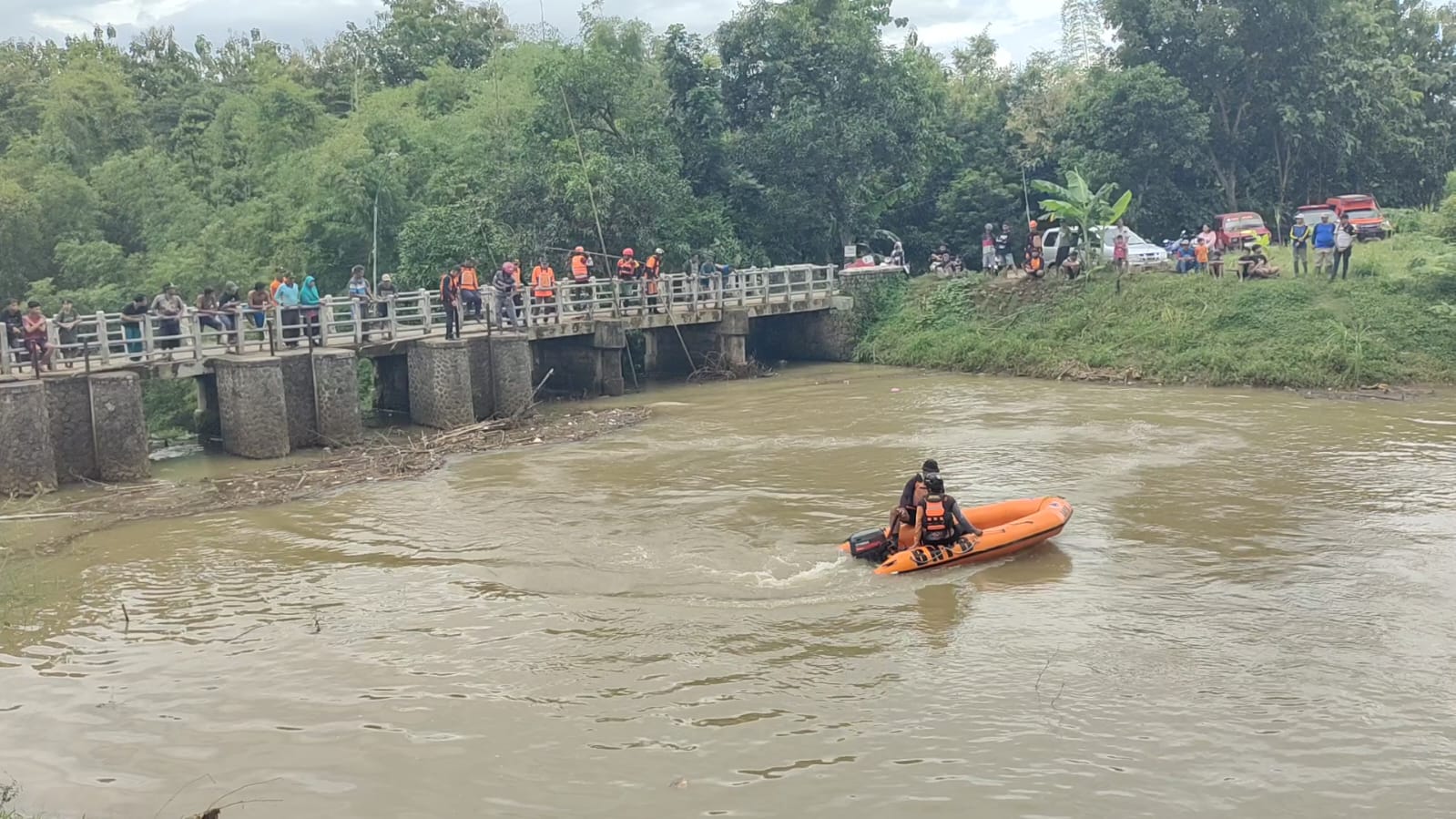 Tantangan utama di lapangan adalah banyaknya tumpukan sampah ranting bambu yang menghambat mobilitas petugas. Meski demikian, tim gabungan yang melibatkan puluhan personel dari berbagai instansi ini berkomitmen untuk terus menyisir aliran sungai hingga korban ditemukan.