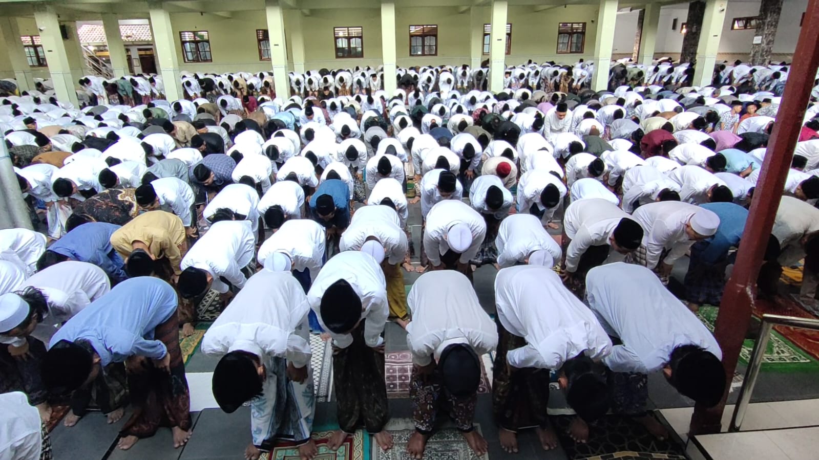 Usai sholat ied, adalah moment yang ditunggu-tunggu oleh para santri. Mereka berebut bersalaman atau sungkem kepada pengasuh Ponpes Ploso KH Nurul Huda Djazuli, dan Gus Kautsar selau pengasuh pondok.