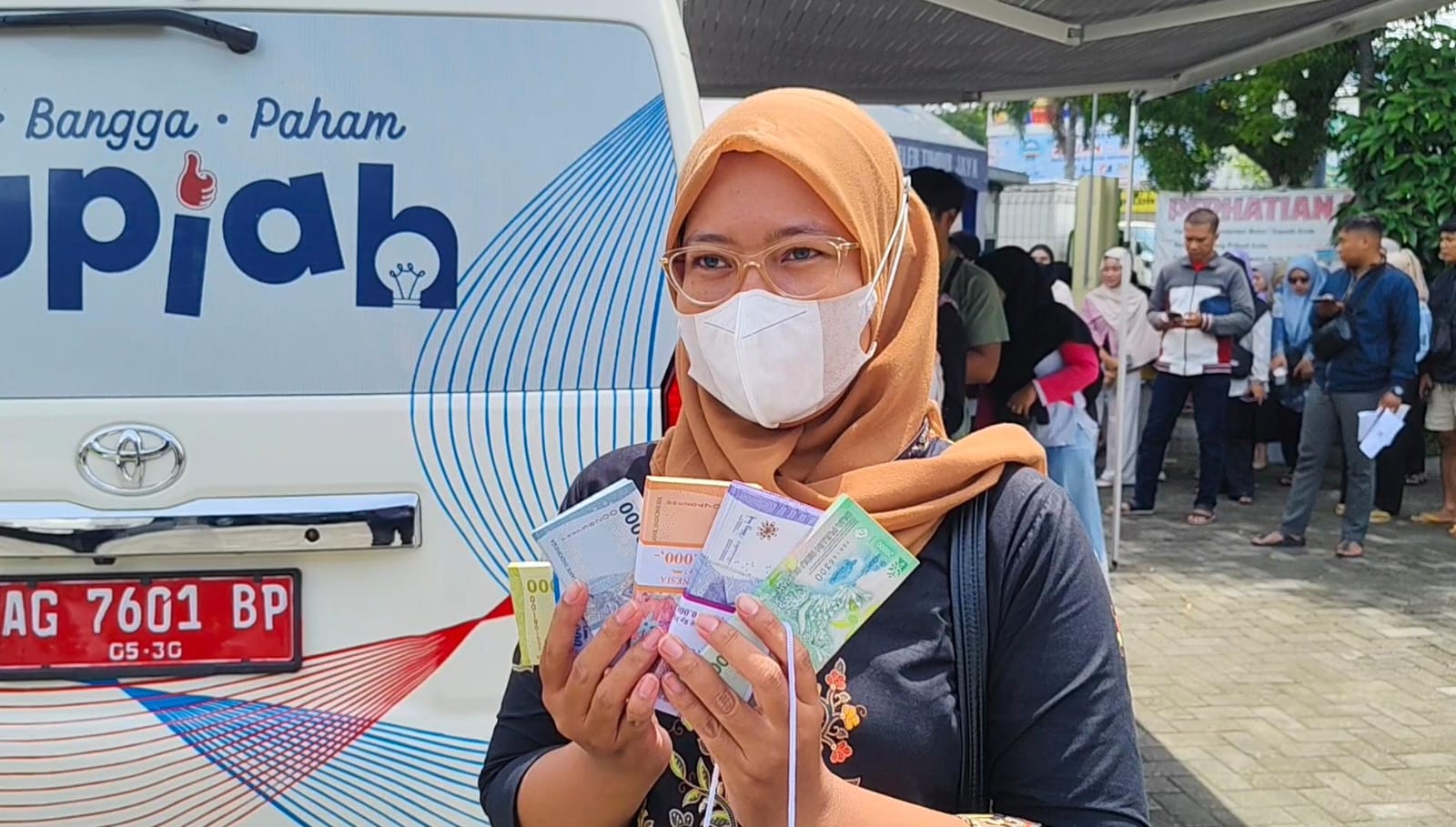 “Sengaja antre di mobil kas keliling karena gratis. Kalau tukar di jasa penukaran pinggir jalan, potongannya tinggi dan kita khawatir risiko dapat uang palsu,” ungkap Nabila di lokasi penukaran.