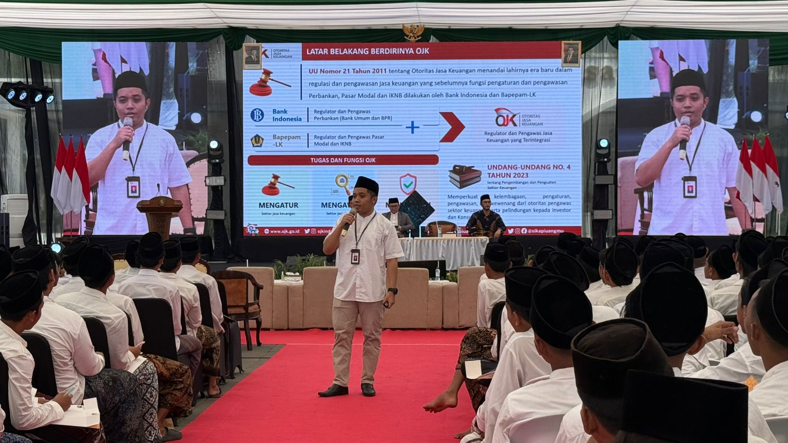 Melalui kegiatan SAKINAH, OJK mendorong penguatan literasi keuangan syariah bagi generasi santri. Kegiatan yang mengusung tema “Santri Sehat, Keuangan Kuat, Masa Depan Hebat” ini diikuti oleh sekitar ratusan santri dan memuat edukasi mengenai pengenalan produk dan layanan keuangan syariah, pengelolaan keuangan, kewaspadaan terhadap aktivitas keuangan ilegal, serta pentingnya gizi dalam membentuk generasi yang sehat dan produktif.